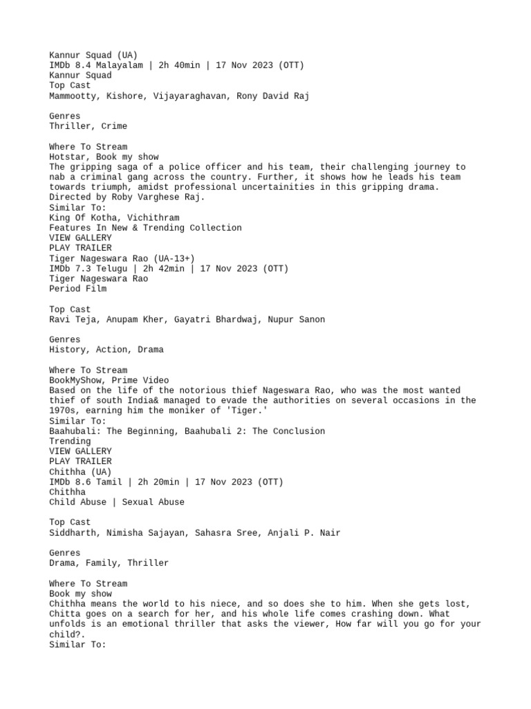 New Released Top South Movies List PDF Cinema Of India